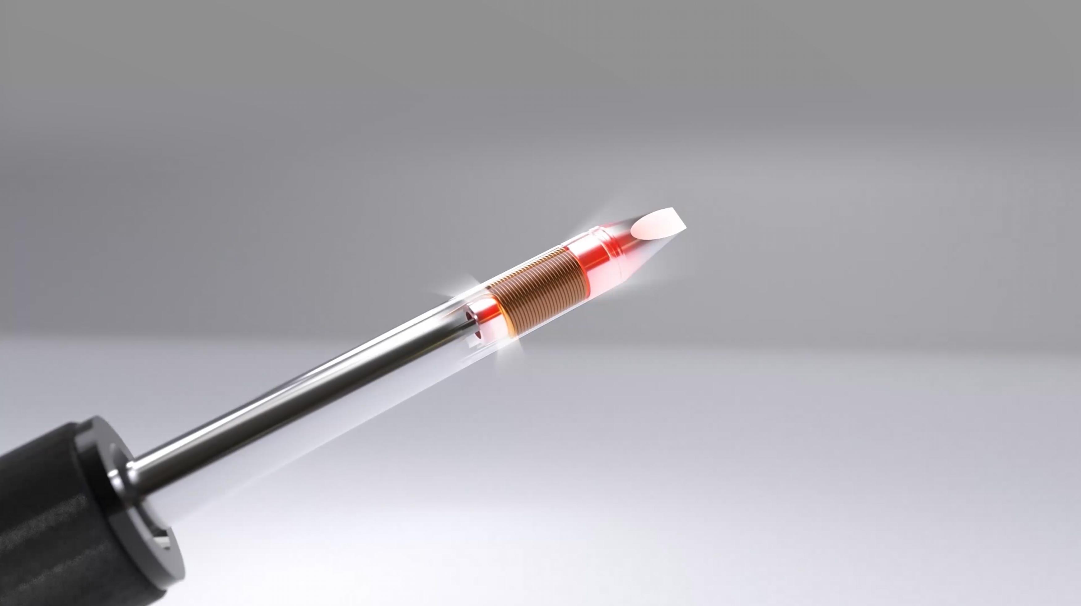 При достижении температуры точки Кюри магнитный сплав теряет свои свойства, и поверхностный эффект исчезает, перенося ток на медный сердечник. Когда наконечник остывает, магнитные свойства восстанавливаются, и скин-эффект возвращается, снова нагревая наконечник.
